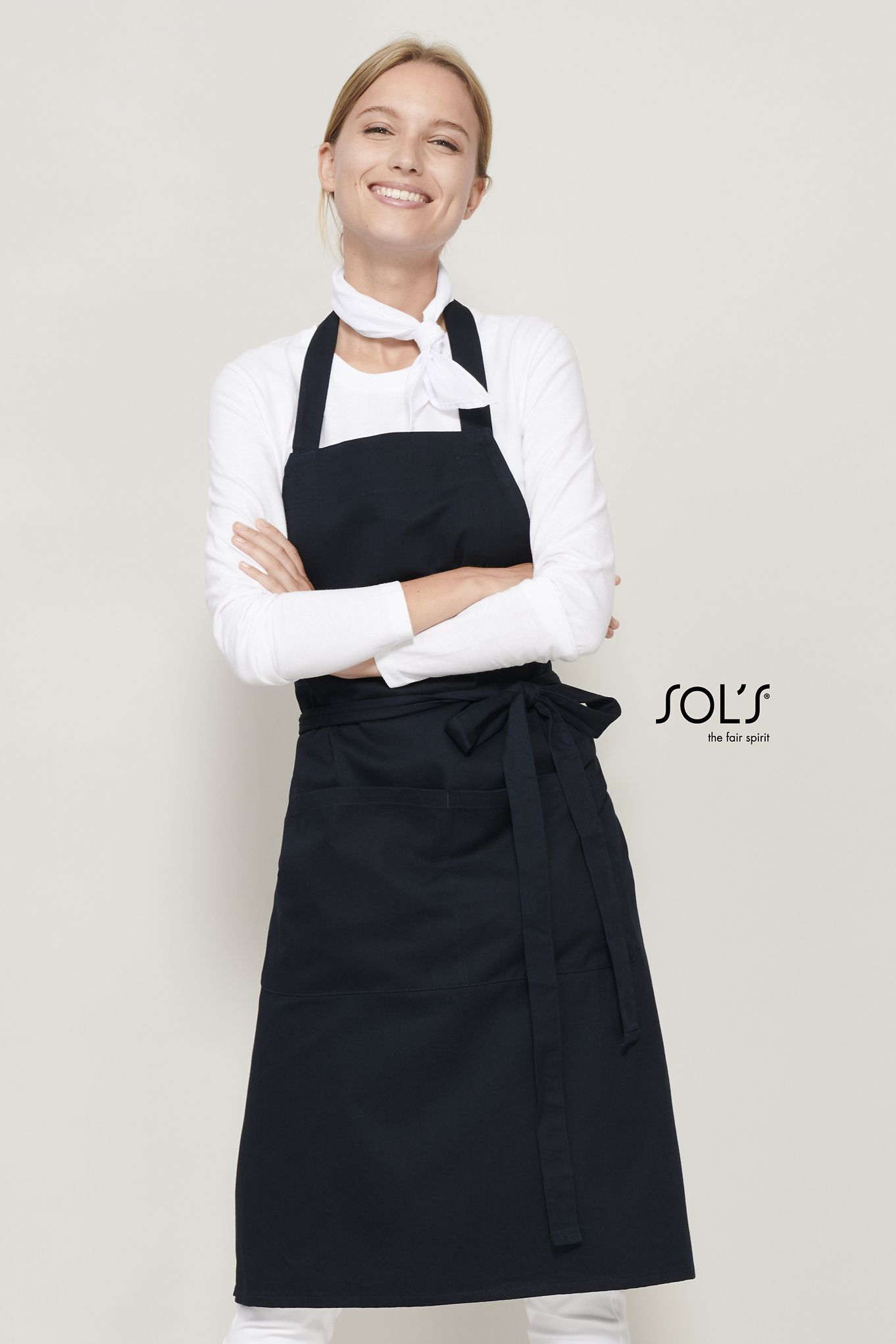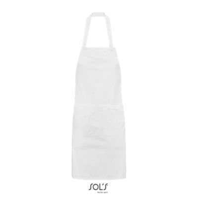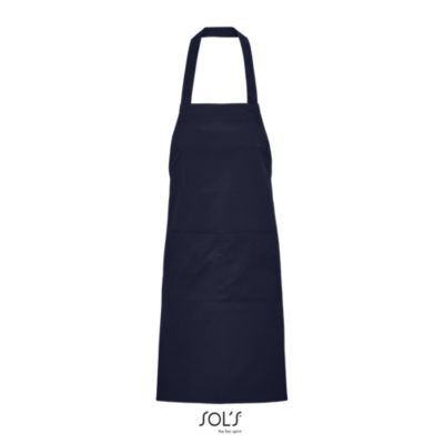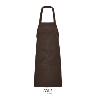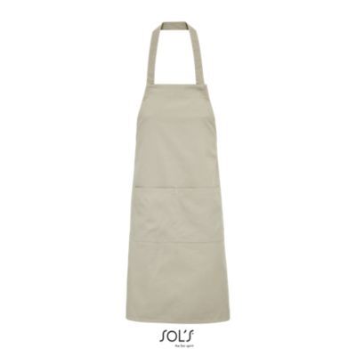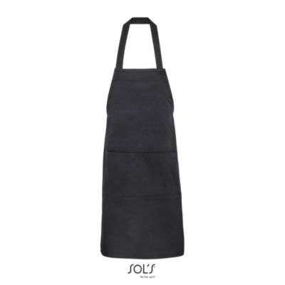 ДЛИННЫЙ ФАРТУК С КАРМАНАМИ. Спереди большой карман с 2 отделениями; Регулируемый вырез с петлей для пуговицы