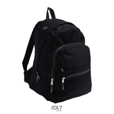 РЮКЗАК ИЗ ПОЛИЭСТЕРА 600D. Большое центральное отделение с застежкой-молнией с двойным замком; 3 передних кармана на молниях; отверстие для телефонной гарнитуры; дно прострочено изнутри; усиленные регулируемые лямки с набивкой; спинка с набивкой