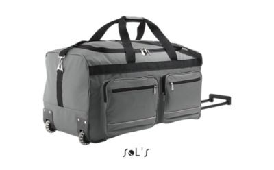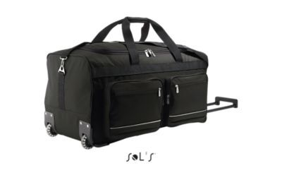 СУМКА ДОРОЖНАЯ КАТЕГОРИИ «ЛЮКС» ИЗ ПОЛИЭСТЕРА 600D НА КОЛЕСИКАХ. Очень большое центральное отделение на молнии; Передние карманы на молнии с двойным отделением; Полностью подшитое, прочное, жесткое дно сумки; Клепаные внешние направляющие на дне сумки; Нейлоновые ручки для переноски и боковая ручка с удобными рукоятками; Регулируемый и съемный нейлоновый плечевой ремень; Выдвижная ручка-тележка в отделении на молнии; Бесшумные" колеса