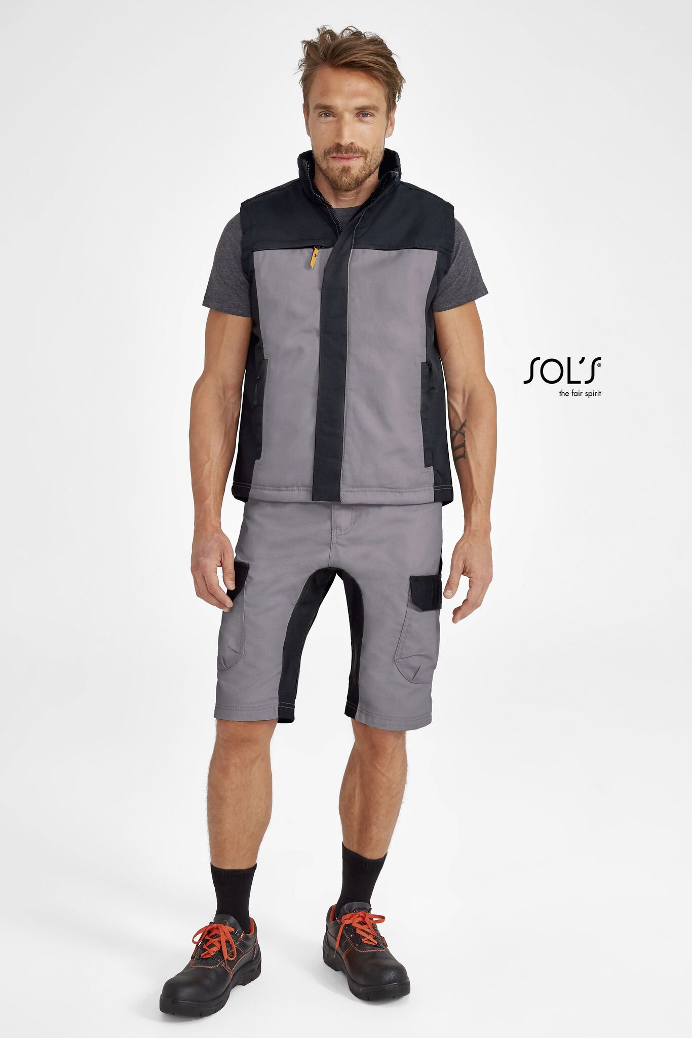 МУЖСКИЕ ДВУХЦВЕТНЫЕ РАБОЧИЕ ШОРТЫ. Застежка-молния; Петли для ремня; Полуэластичная талия; 7 карманов (2 боковых кармана - 2 задних кармана); Пресс-шпильки; Тканый внутренний идентификационный ярлык