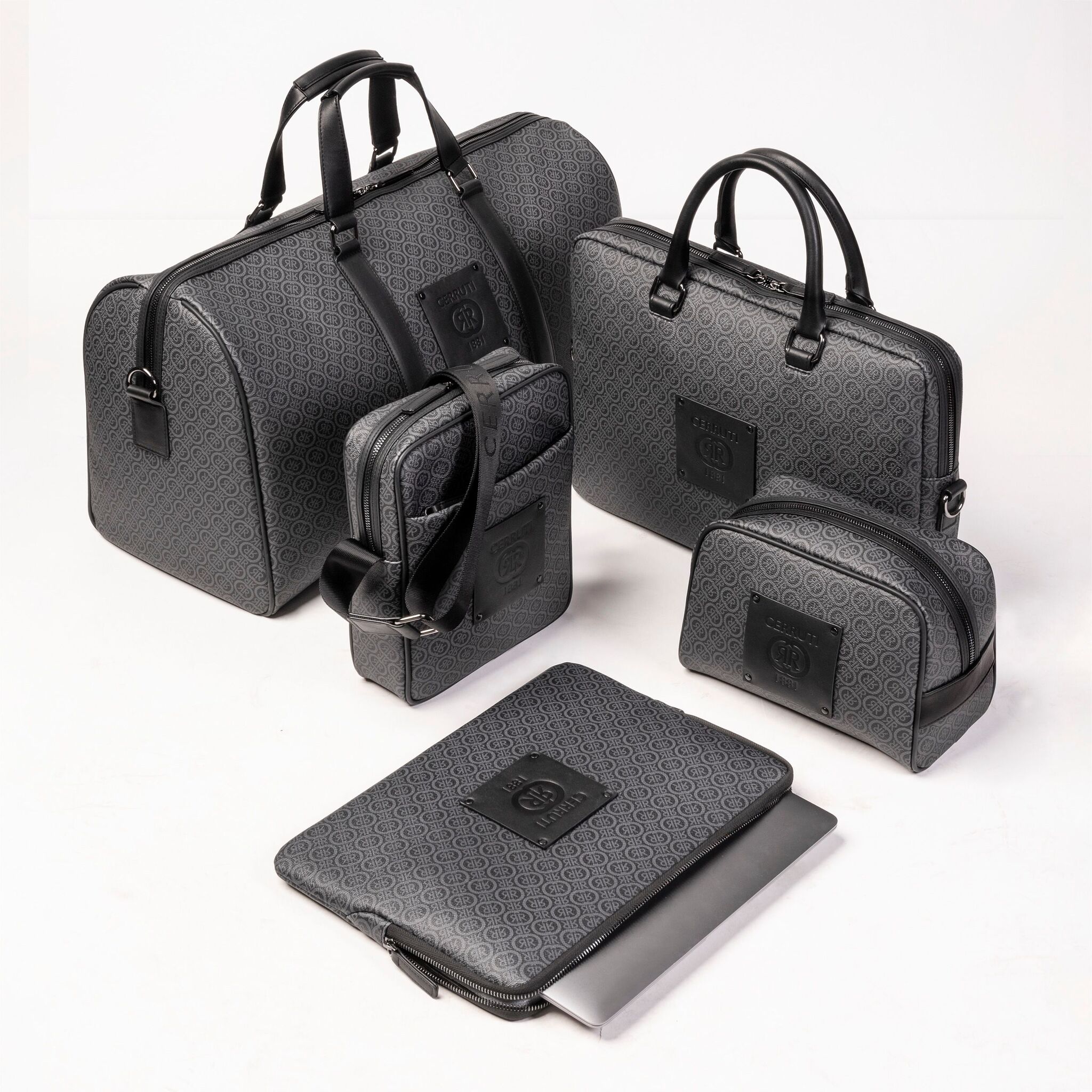 В этом году Cerruti следует тренду монограмм, но, конечно, в современной интерпретации. Результат? Эти переосмысленные версии наших самых продаваемых сумок "Hamilton", переосмысленные с монограммным принтом по всей поверхности, украшенным новым логотипом Cerruti. Секрет элегантности заключался в том, чтобы сохранить эту смелую вещь в сдержанных тонах, смешав черный, оружейный и темно-серый, так что в результате получилась красивая, элегантно брендированная вещь, которая подойдет к любому наряду.