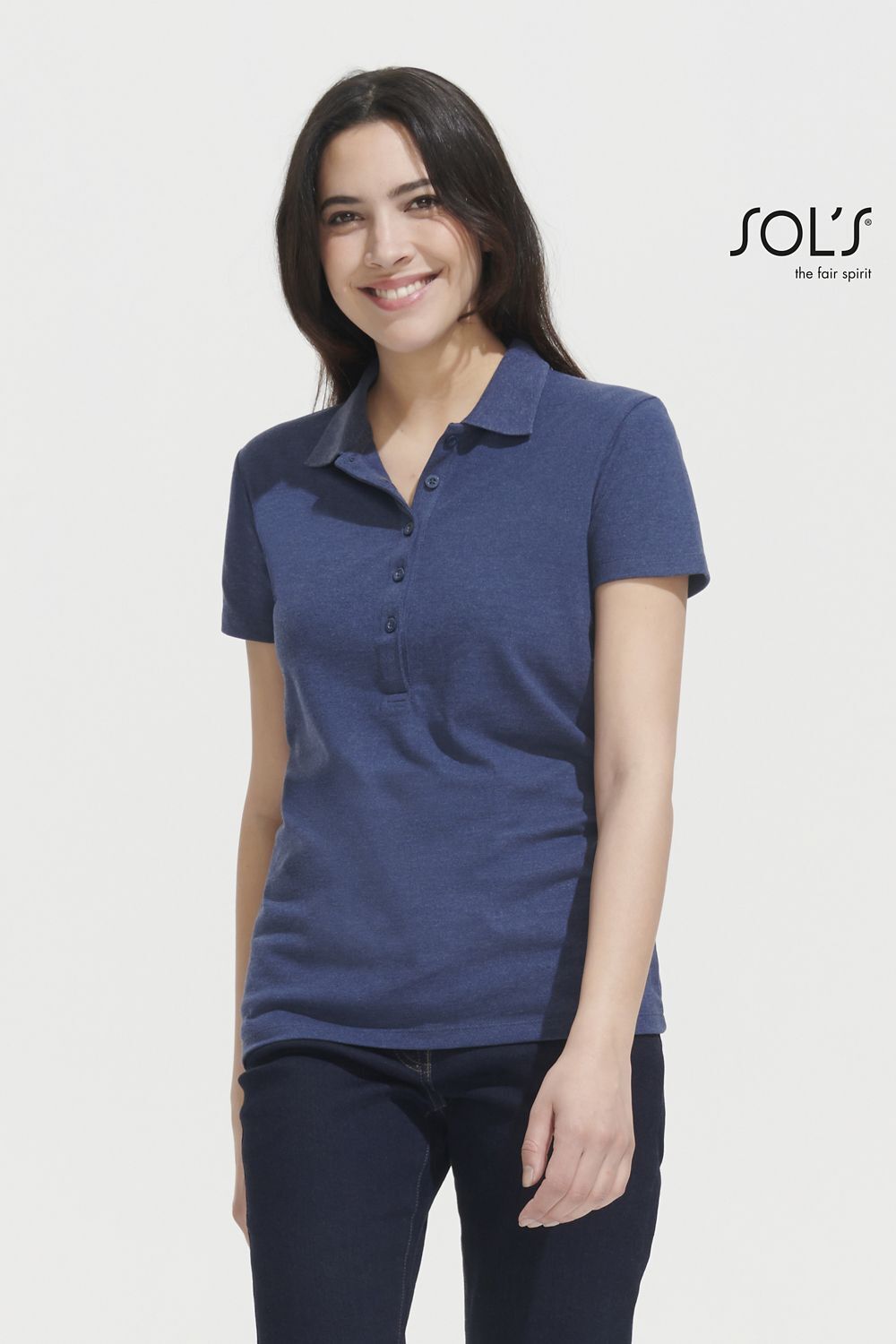 ЖЕНСКАЯ РУБАШКА ПОЛО ИЗ Х/Б ТКАНИ С ЭЛАСТАНОМ. Воротник и манжеты в рубчик; Тесьма по вороту; Короткий рукав; Приталенный крой; Планка с 5 пуговицами тон в тон; Кроеный трикотаж
