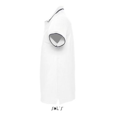 МУЖСКАЯ РУБАШКА ПОЛО С КОРОТКИМ РУКАВОМ. Ребристый воротник и манжеты; Контрастная подкладка на воротнике; Короткие рукава; Усиленный воротник с 4 жемчужно-белыми пуговицами; Контрастная серая саржевая полоса на вырезе, пуговицах, боковых разрезах + бирка внизу рукава; Сшитый разрез; Облегающий крой; Запасная пуговица на внутреннем боковом шве