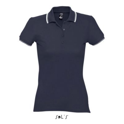 ЖЕНСКАЯ РУБАШКА ПОЛО С КОРОТКИМ РУКАВОМ. Ребристый воротник и манжеты; Подкладка на воротнике; Короткие рукава; Контрастный полосатый воротник и манжеты; Однотонный воротник с 4 пуговицами; Прямой подол с контрастными боковыми разрезами из саржи; Вшитый разрез; Запасная пуговица на внутреннем боковом шве