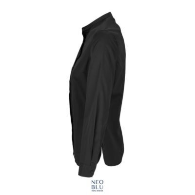 ЖЕНСКАЯ РУБАШКА С ВОРОТНИКОМ-СТОЙКОЙ. Длинный рукав; Воротник-стойка; Пуговицы закрыты планкой; Регулируемые манжеты; боковыми разрезами