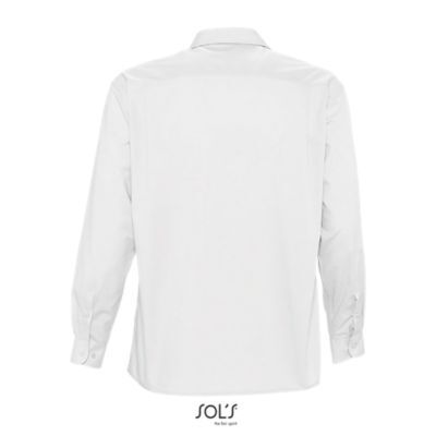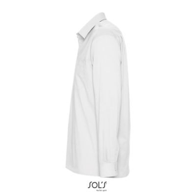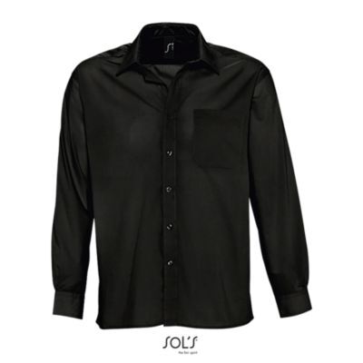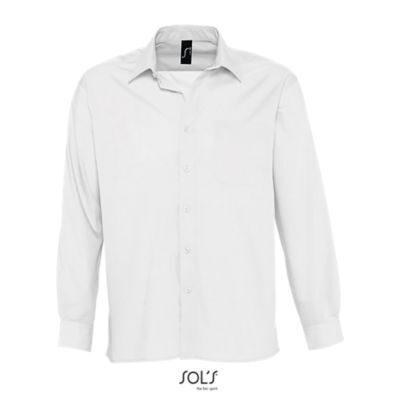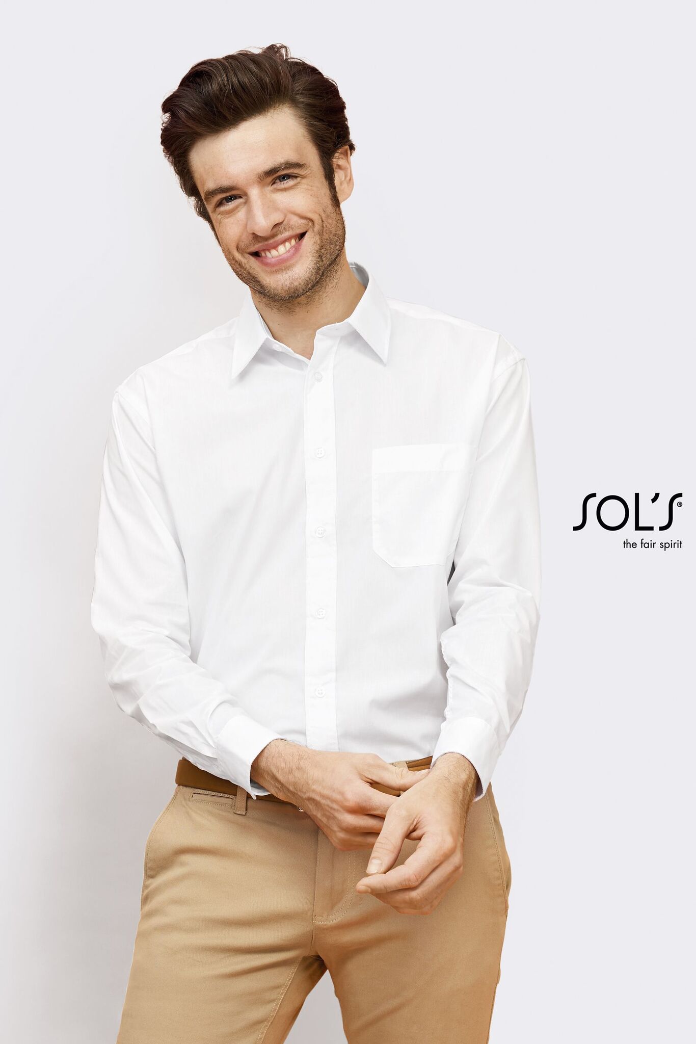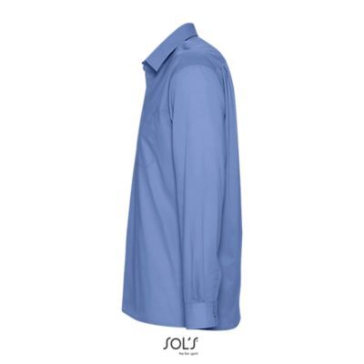 РУБАШКА МУЖСКАЯ ИЗ ПОПЛИНА С ДЛИННЫМ РУКАВОМ. Прямой крой; Длинный рукав; Жесткий воротник; Регулируемые манжеты на 2 пуговицах и разрез рукава "капуцин"; Планка с 7 пуговицами в цвет изделия; Нагрудный карман слева; 2 складки на спине для свободы движений