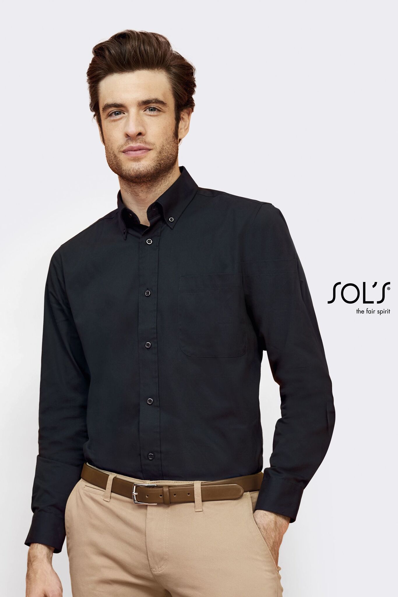 РУБАШКА МУЖСКАЯ ИЗ ХЛОПКОВОГО ТВИЛА С ДЛИННЫМ РУКАВОМ. Прямой крой; Длинный рукав; Классический воротник на 2 пуговицах; Регулируемые манжеты на пуговицах и разрез рукава "капуцин"; Планка с 7 пуговицами в цвет изделия; Нагрудный карман слева; 2 запасные пуговицы