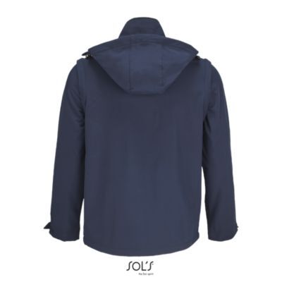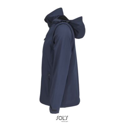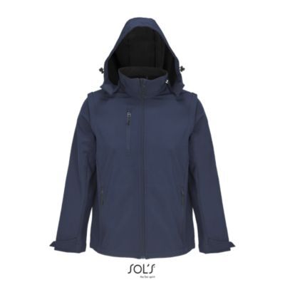 КУРТКА SOFTSHELL С КАПЮШОНОМ И СЪЕМНЫМИ РУКАВАМИ. Основная застежка, карманы по бокам и на груди с нейлоновой молнией в тон