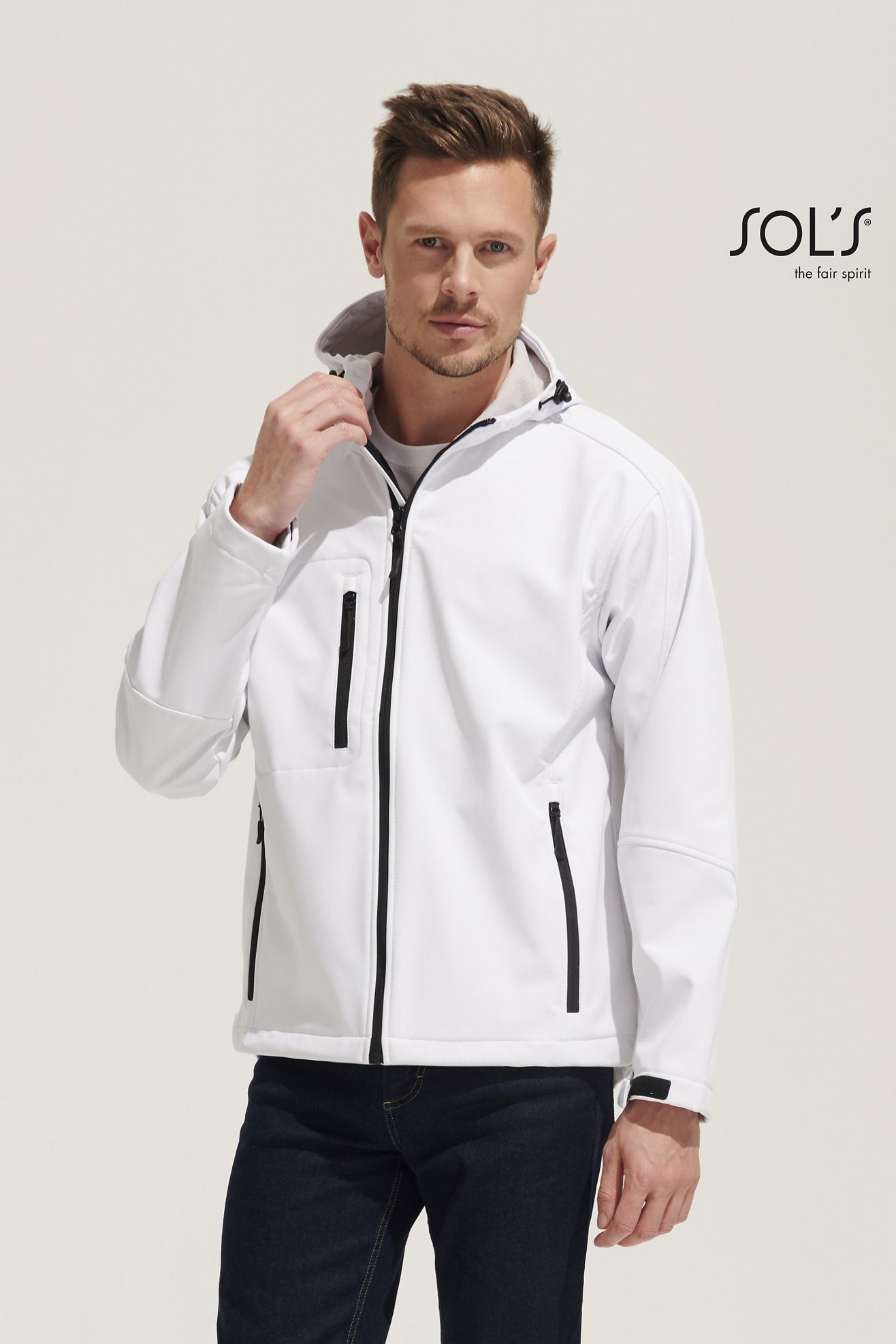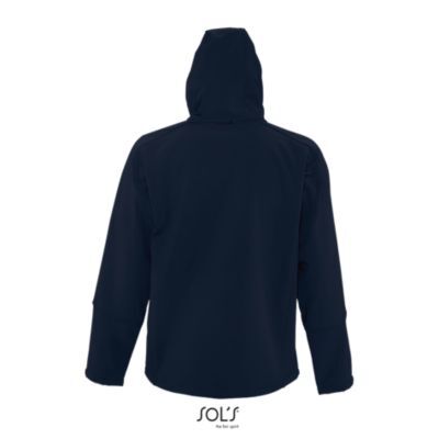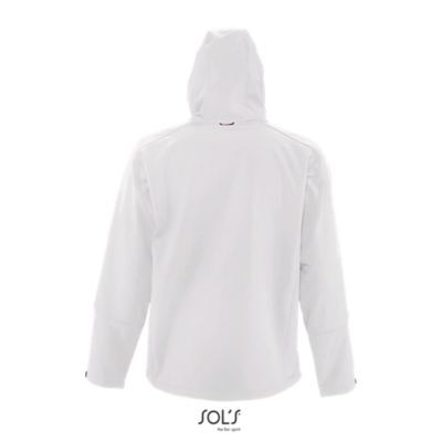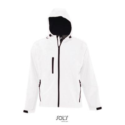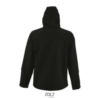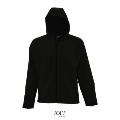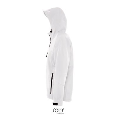 МУЖСКАЯ КУРТКА С КАПЮШОНОМ СОФТШЕЛЛ. Карманы на молнии по бокам и на груди; стягивающий шнур на талии; регулируемые с помощью липучек манжеты;; капюшон со стягивающим шнуром.