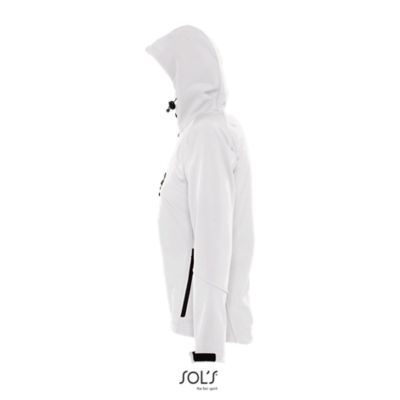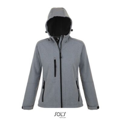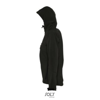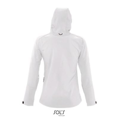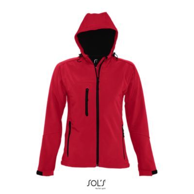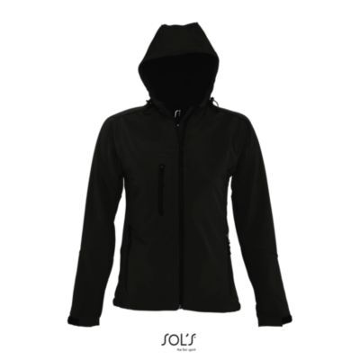 ЖЕНСКАЯ КУРТКА С КАПЮШОНОМ СОФТШЕЛЛ. Карманы на молнии по бокам и на груди; стягивающий шнур на талии;; регулируемые с помощью липучек манжеты;; капюшон со стягивающим шнуром.