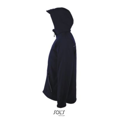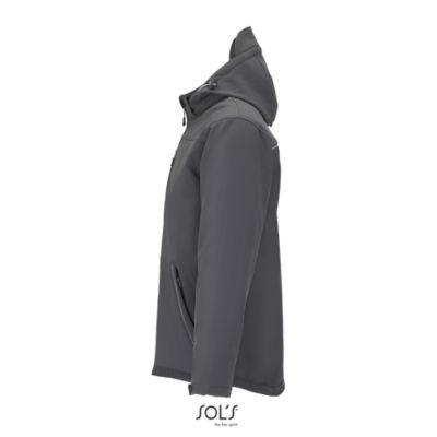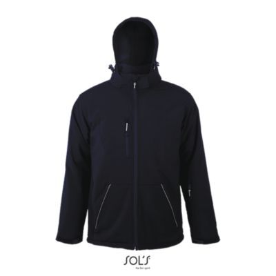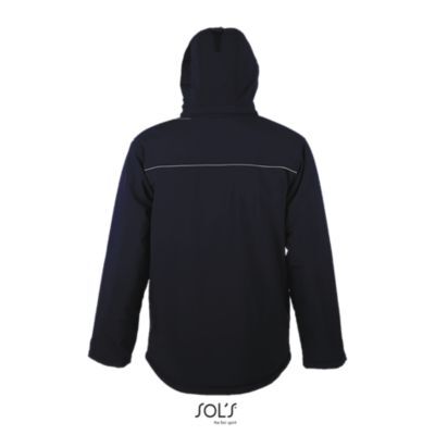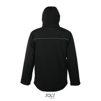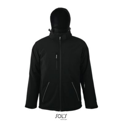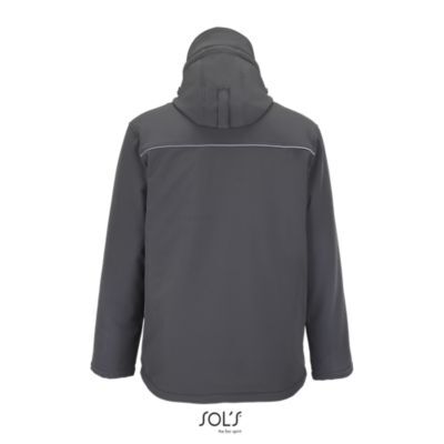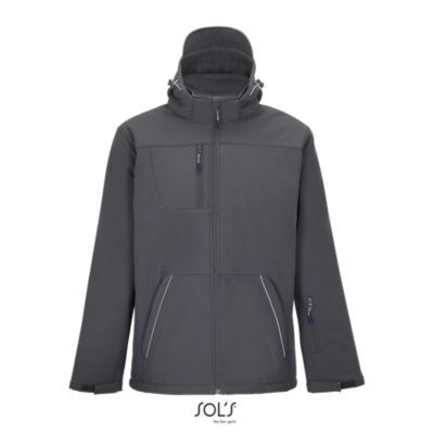 МУЖСКАЯ ЗИМНЯЯ КУРТКА ИЗ СОФТШЕЛЛА. Полностью утепленная зимняя модель из софтшелла; Отстегивающийся капюшон с козырьком регулируется стягивающим шнуром со стопперами и лентой-липучкой; 3 передних кармана на молнии + 1 карман на молнии на рукаве + 1 внутренний карман на молнии + 1 внутренний карман из сетки; Манжеты регулируются лентой-липучкой, внутренние эластичные манжеты; Стягивающие шнуры по низу изделия