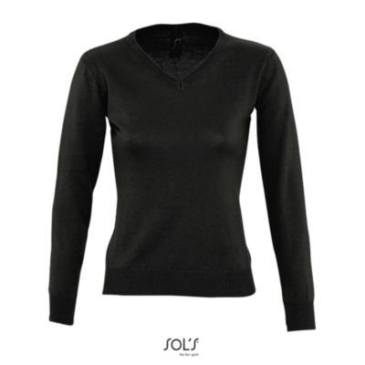 ЖЕНСКИЙ СВИТЕР С V-ОБРАЗНЫМ ВЫРЕЗОМ. Облегающие рукава; Ребристые манжеты и подол; Зауженные проймы; Облегающий крой