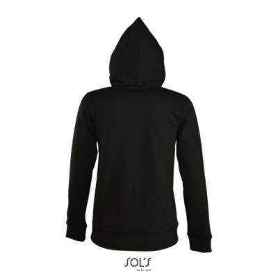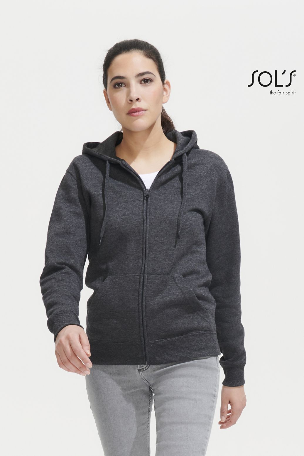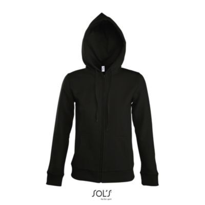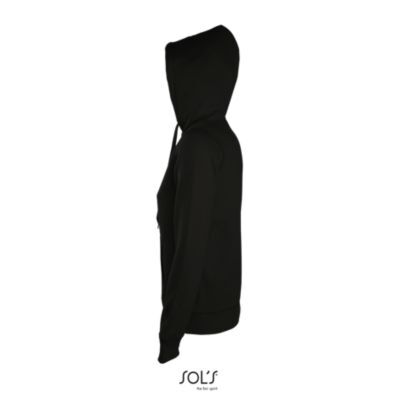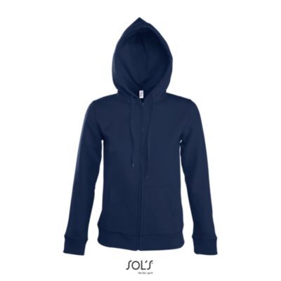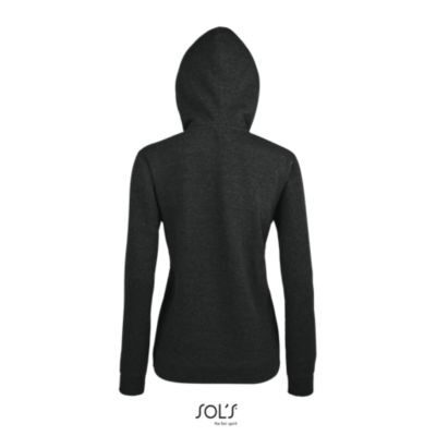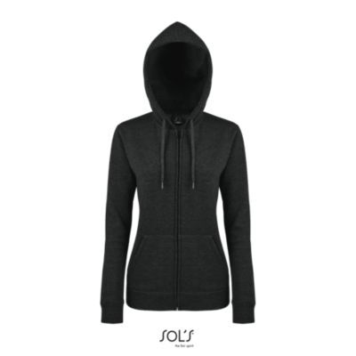 ЖЕНСКАЯ МОДЕЛЬ С КАПЮШОНОМ, ВНУТРЕННЯЯ СТОРОНА ИЗ МОЛЬТОНА С НАЧЕСОМ. Подол и манжеты из эластана; Облегающие рукава; 2 кармана кенгуру; Капюшон с подкладкой и утягивающим шнурком тон в тон; Потайная молния; Облегающий крой; Прошитый срез