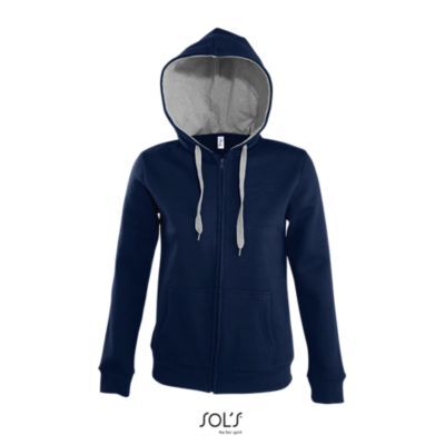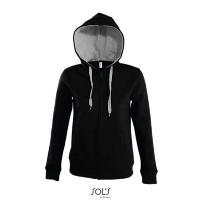 КУРТКА ЖЕНСКАЯ КОНТРАСТНЫХ ЦВЕТОВ, ВНУТРЕННЯЯ СТОРОНА ИЗ МОЛЬТОНА С НАЧЕСОМ. Подол и манжеты из эластана; Втачные рукава; 2 кармана "кенгуру; Капюшон с подкладкой и контрастной отделкой и утягивающим шнурком; Потайная молния; Приталенный крой; Крой и пошив