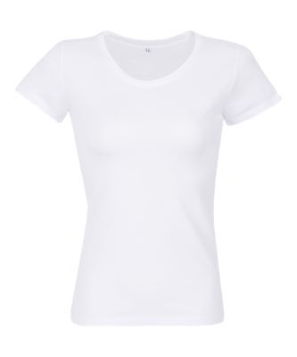 ЖЕНСКАЯ ФУТБОЛКА ИЗ КРОЕНОГО ТРИКОТАЖА С КОРОТКИМ РУКАВОМ. Простроченный крой и натуральная отделка для более мягкого качества; Круглый ребристый воротник и внутренняя горловина; Современный крой; Область печати спереди: 29 x 44 см для женской футболки размера M; Размер этой области варьируется в зависимости от размера изделия (см. таблицу размеров области печати)