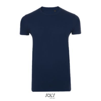 ПРИТАЛЕННАЯ ФУТБОЛКА МУЖСКАЯ С КРУГЛЫМ ВОРОТОМ. Подкладка на воротнике; Воротник с отделкой из эластана; Короткие рукава; Вшитый разрез; Зауженный крой