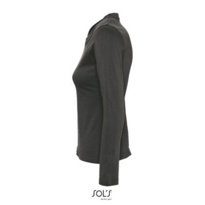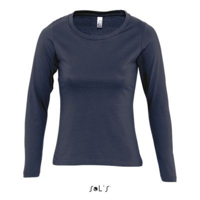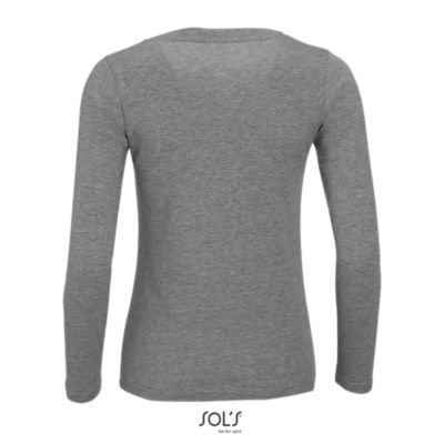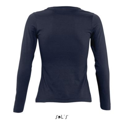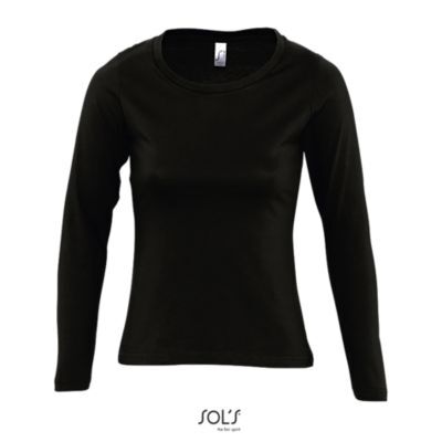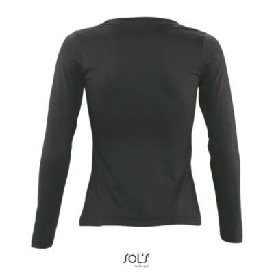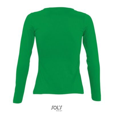 ФУТБОЛКА ЖЕНСКАЯ С КРУГЛЫМ ВОРОТОМ И ДЛИННЫМ РУКАВОМ. укрепляющая тесьма по вороту; край круглого ворота связан резинкой с эластаном; глубокий вырез; приталенная модель; манжеты без резинки;; изделие выкроено из трикотажного полотна