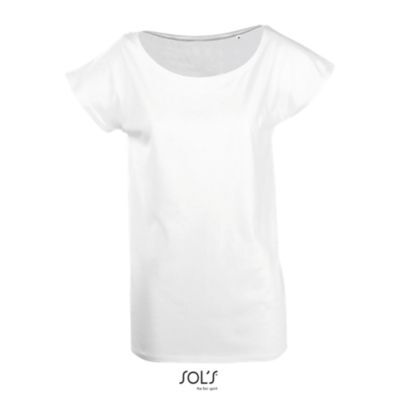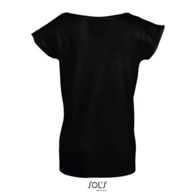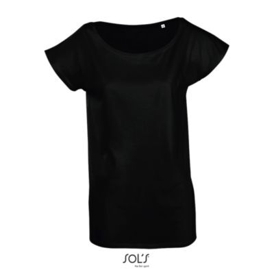 ДЛИННАЯ ЖЕНСКАЯ ФУТБОЛКА-КИМОНО, КОРОТКИЕ РУКАВА. Ворот из джерси; Низкая горловина; укрепляющая тесьма по вороту; рукава кимоно