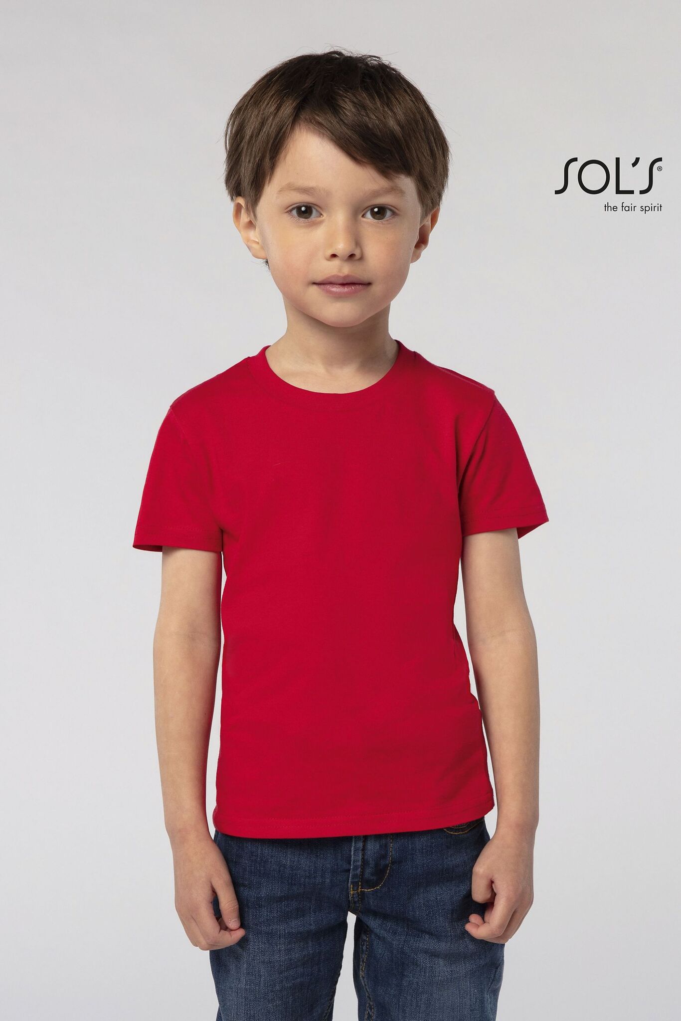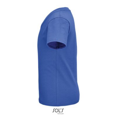 ДЕТСКАЯ ОБЛЕГАЮЩАЯ ФУТБОЛКА ИЗ ДЖЕРСИ С КРУГЛЫМ ВЫРЕЗОМ. Ребристый воротник из 100% хлопка; Круглый вырез; Укрепляющая тесьма по вороту; Облегающая модель; Без боковых швов