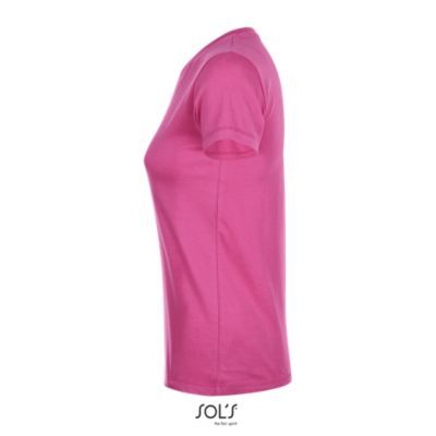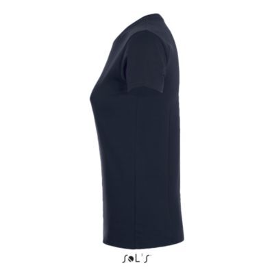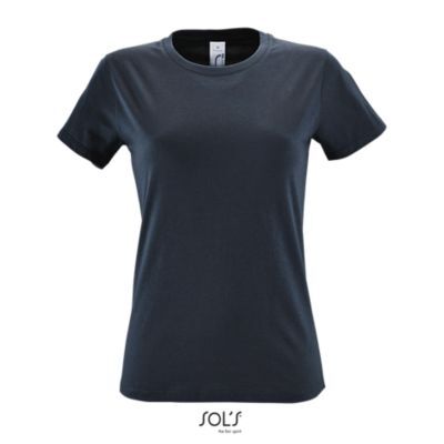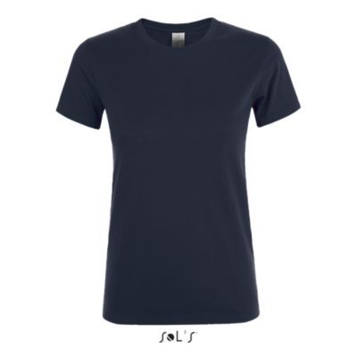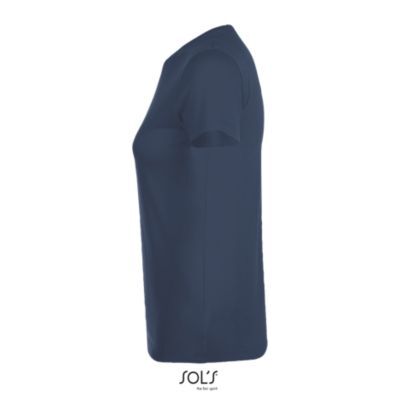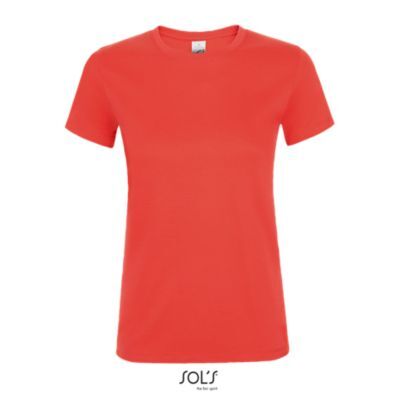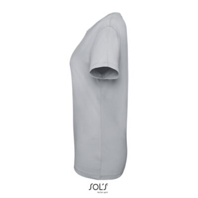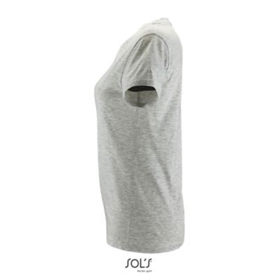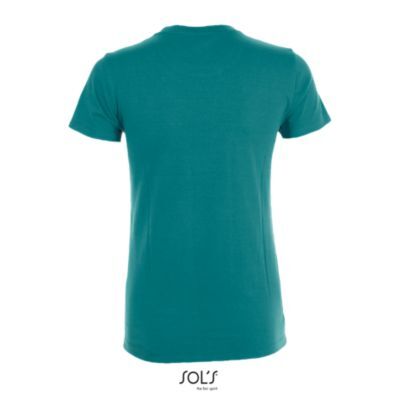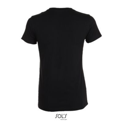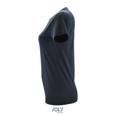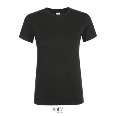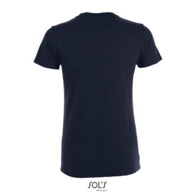 ЖЕНСКАЯ ФУТБОЛКА С КРУГЛОЙ ГОРЛОВИНОЙ. Полоса на воротнике; Ребристый воротник; Короткие рукава; Зауженный крой; Вшитый разрез