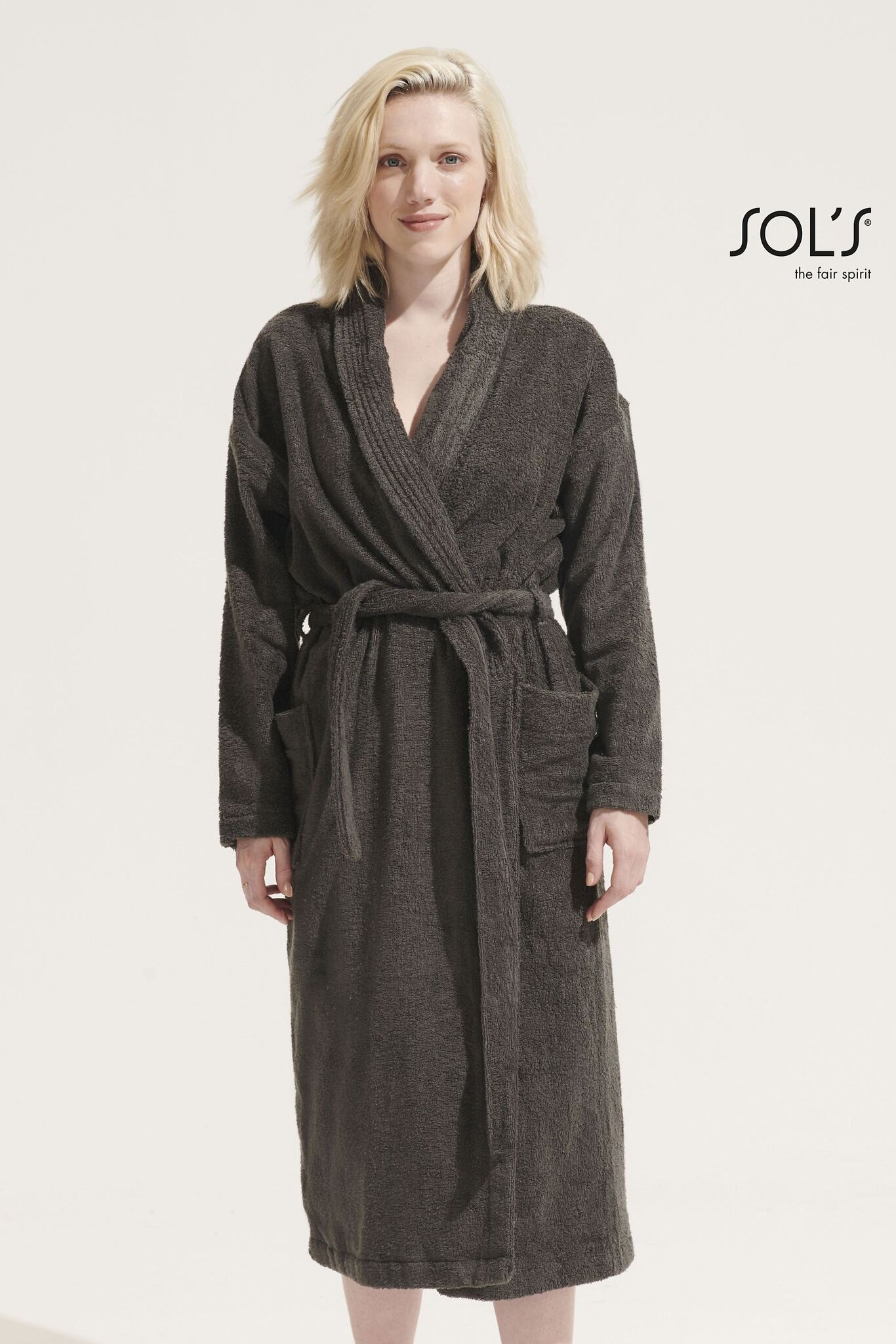 МАХРОВЫЙ ХАЛАТ С ВОРОТНИКОМ КИМОНО. Унисекс; 2 накладных кармана; Пояс с двойными петлями