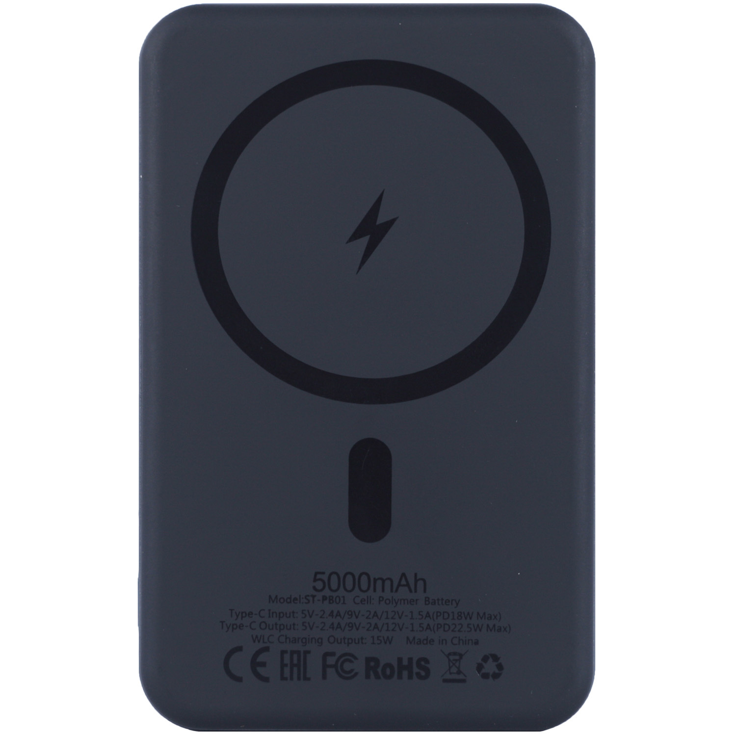Ёмкость: 5000mAh; Tupe C вход: 5V=2A/ 9V=2A; Type C выход: 5V=2,4A, 9V=2.22A, 12V/1.67A, 20W (Max). Беспроводная зарядка: 15W, 10W, 7,5W, 5W. Размер: 106x66x139 мм. Материал: Алюминий, ABS. Размер индивидуальной упаковки: 117х95х23 мм.
