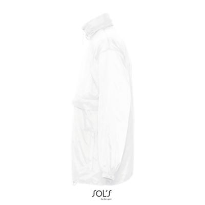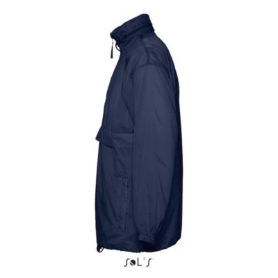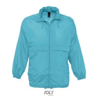 ВЕТРОВКА УНИСЕКС ВОДООТТАЛКИВАЮЩАЯ. Застежка-молния; капюшон и стягивающий шнурок складываются в воротник; 2 наружных кармана на молниях; ветровка может быть сложена в карман и закреплена эластичным ремнем на талии;; манжеты на резинке;; вентиляционные отверстия; по низу изделия шнурок